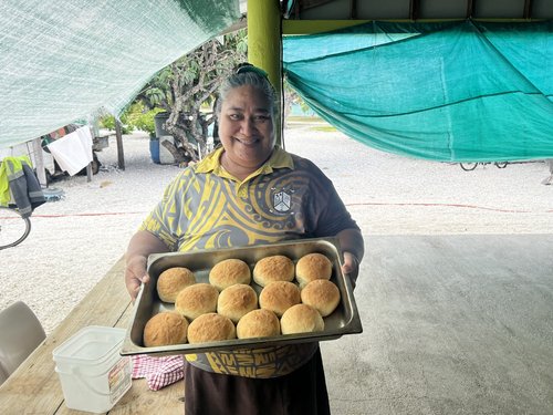 "Fish, rice and coconut make up a significant portion of this diet. Being a coral atoll, the land is quite infertile, which means that growing fruit or vegetables is very hard. The coconut is the only tree that flourishes here, the breadfruit (kuru) grows in very small quantities, as does banana, mango tomato and a handful of others. Tinned beef is also a favourite of the islanders, despite its high cost and low quality! Bread and cakes are baked by most of the women on the island. Each family has to order their food from Rarotonga, and wait for it to be delivered by the supply ship that comes every few months. There is a small shop on the island, really just a room in Papa Moana’s house, that sells essentials and a few sweets, at great expense, and there is no guarantee that there will be stock. I once enquired about the opening hours of the Papa’s shop, “Oh when he is awake the shop is open”