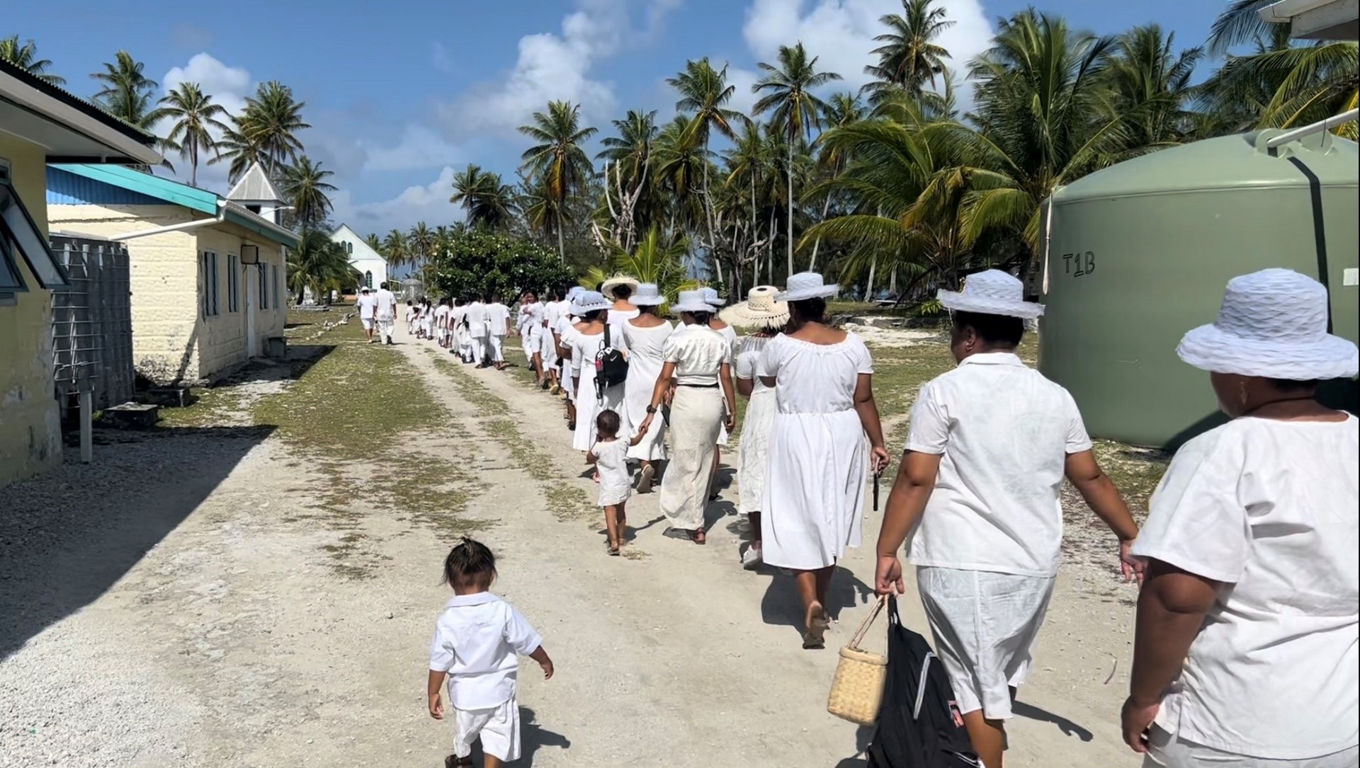 Omoka - the larger of the island's two villages - has two churches, a large and well attended CICC church to which most people belong, and a smaller Catholic Church. Tetoutua, the eastern village, is home to one CICC church and both villages have a Sunday school. The members of the CICC church attend up to five times a week. First on Wednesday morning at six o’clock, then Friday morning at six, and three times on Sunday; at six, ten and four. Sunday school is attended twice a week, before the ten o’clock and four o’clock Sunday services.